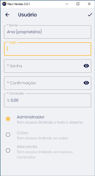 Veja neste tutorial os tipos de usurários, suas características e como como você pode cadastrá-los dentro do Navi Vendas.