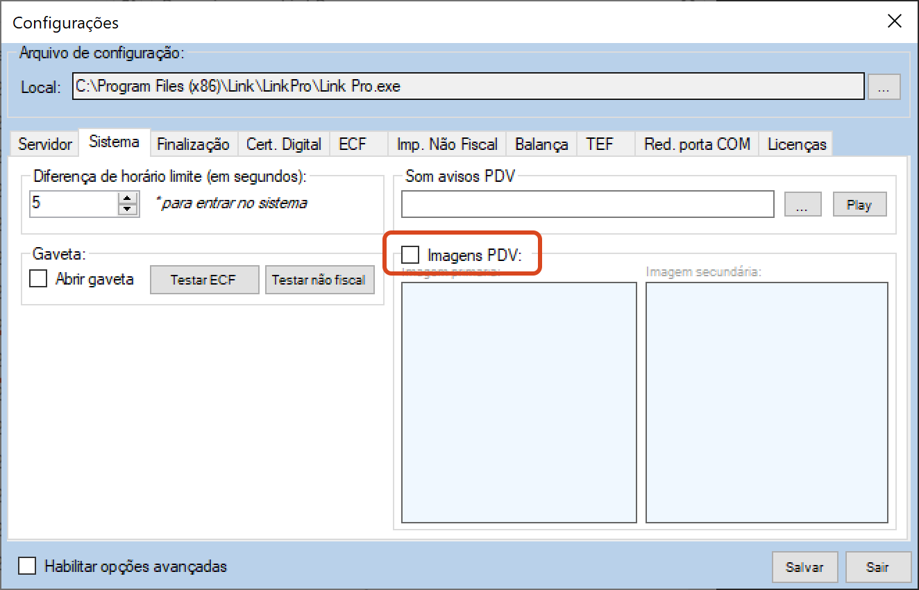- Habilite a opção Imagens PDV.