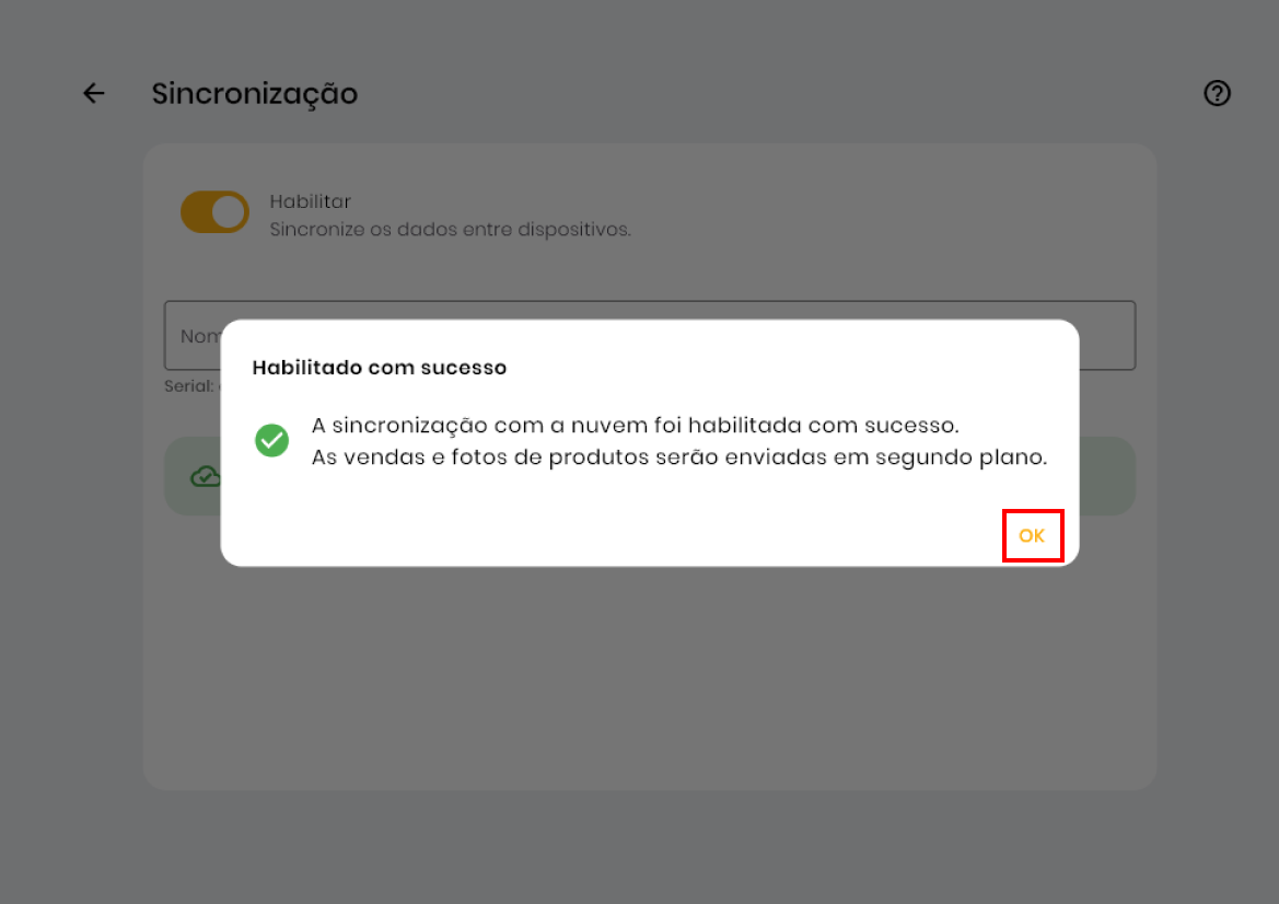 - Aguarde a sincronização e clique em Ok.