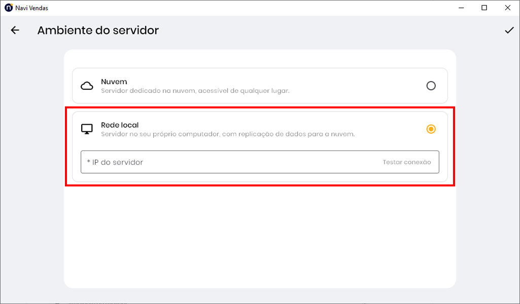 A sincronização do Navi Vendas funciona através dos ambientes do servidor, sendo eles em Nuvem e em Rede local.