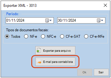 - Clique no botão E-mail para contabilista.