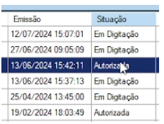 A Nota escolhida precisa estar com a coluna “Situação” = Autorizada.
