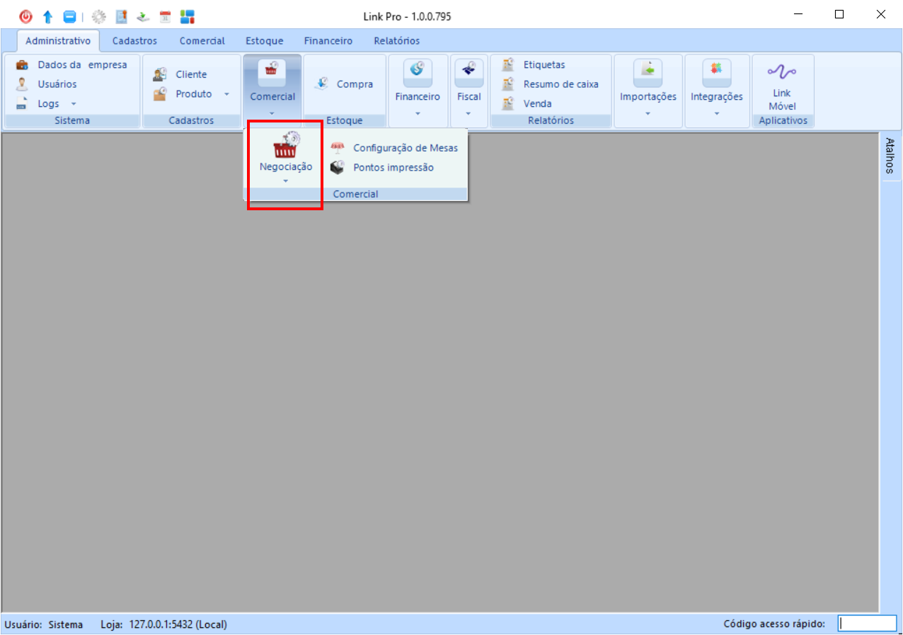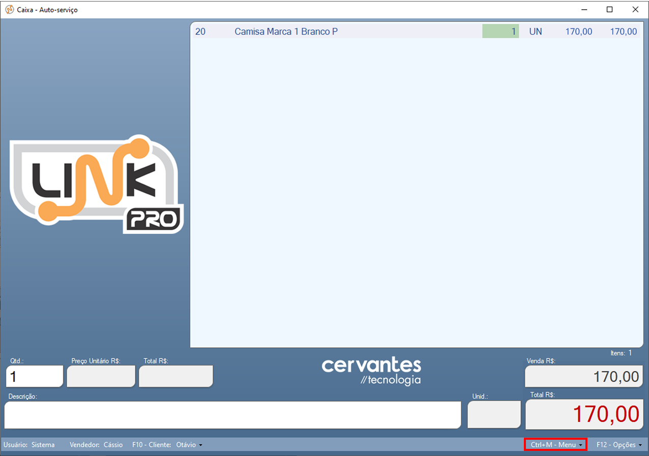 - Clique no Menu do Caixa ou pressione “Ctrl+M”.