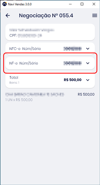 Na tela Caixa busque a negociação conforme NFC-e emitida.