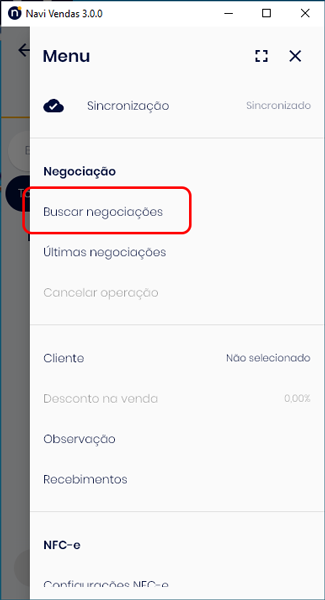 1. Clique no menu superior direito e escolha a opção Buscar negociações.