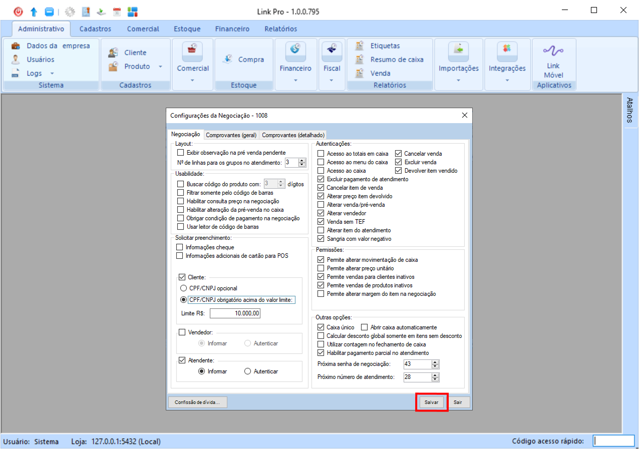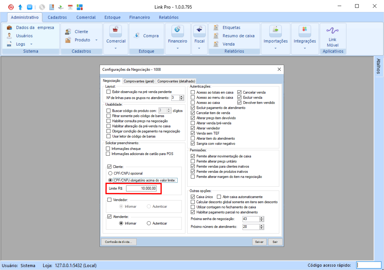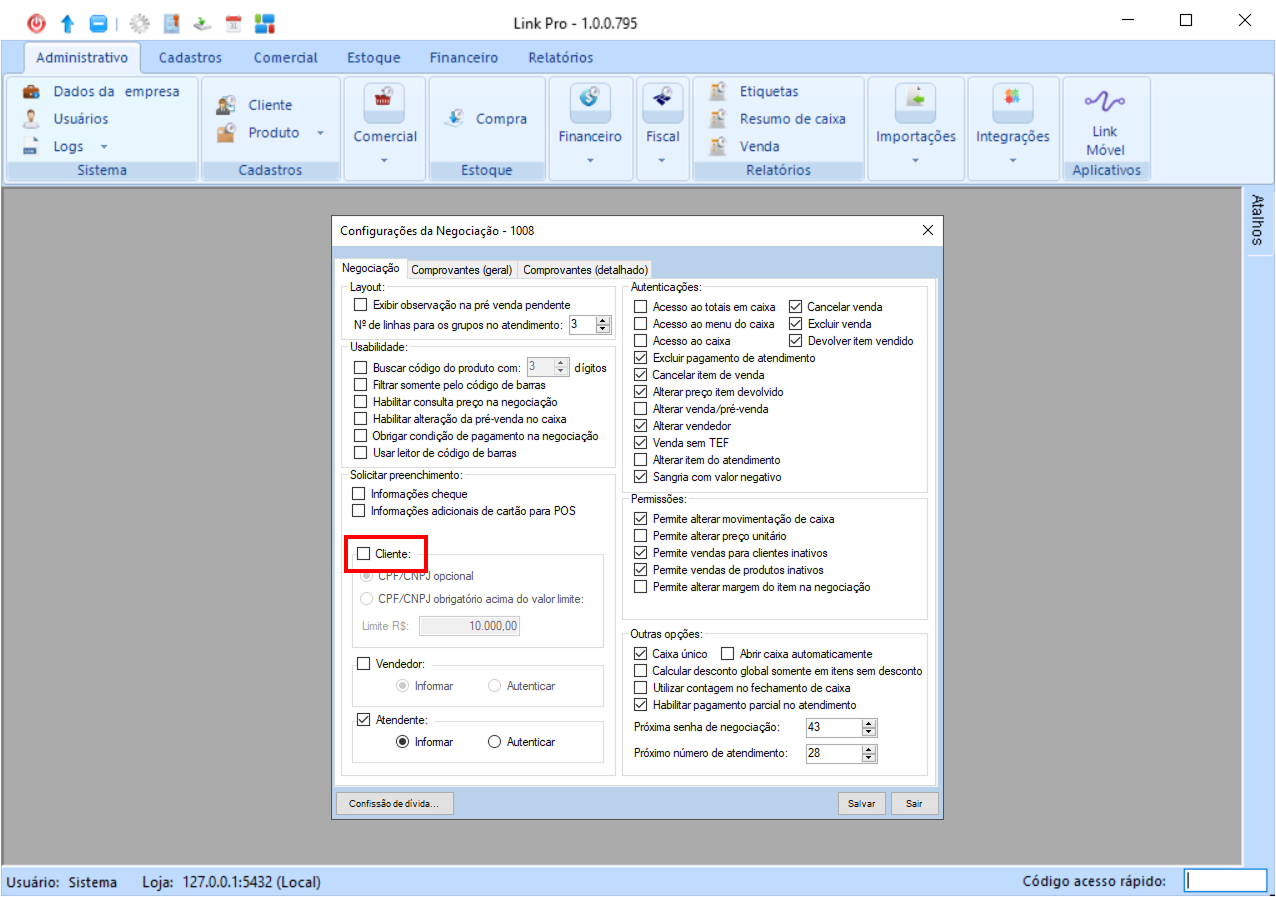 Neste tutorial, mostraremos como habilitar a solicitação do CPF ou CNPJ na nota fiscal no momento da venda dentro do sistema Link. Em estados brasileiros, essa exigência segue regras específicas, podendo ser obrigatória a partir de determinado valor. Além disso, informar o documento pode garantir ao consumidor acesso a programas de benefícios.