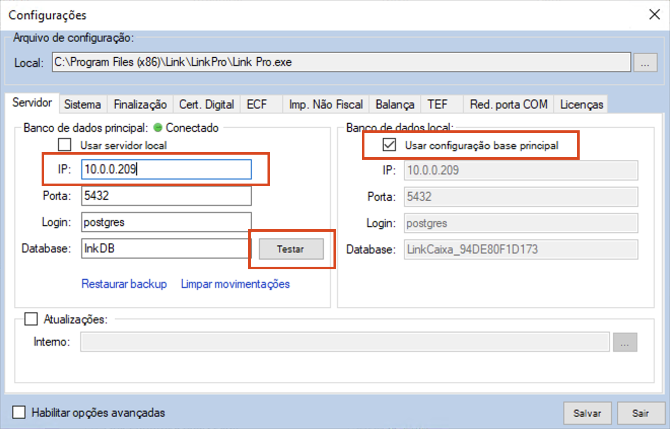 - Marque também a caixa de seleção “Usar configuração base principal”.