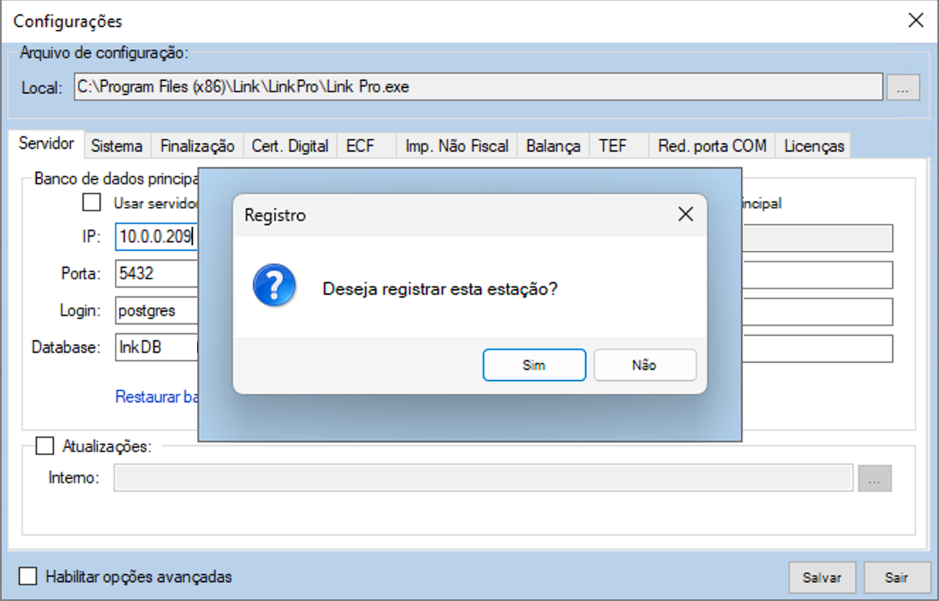 - Aparecerá a mensagem “Deseja registrar esta estação?”, clique em Sim.
