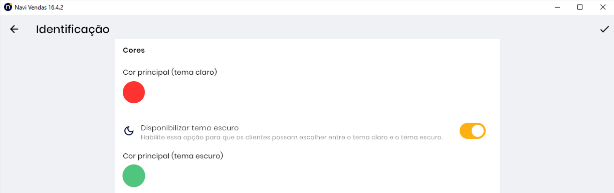 Caso disponibilize o tema escuro, repita este processo para a cor principal (tema escuro).