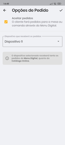 3. Caso utilize o Navi Vendas em mais de um dispositivo, clique na opção Dispositivo que receberá os pedidos e defina o dispositivo que receberá os pedidos.