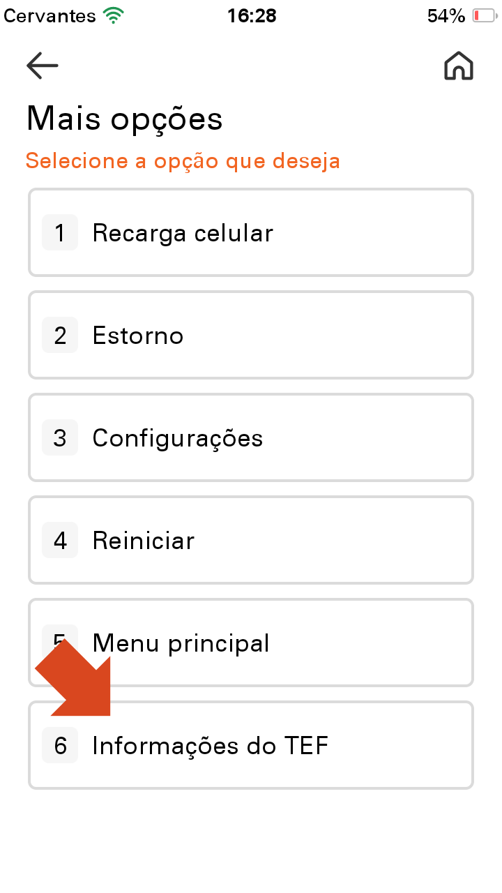 7. Escolha a opção Informações do TEF.