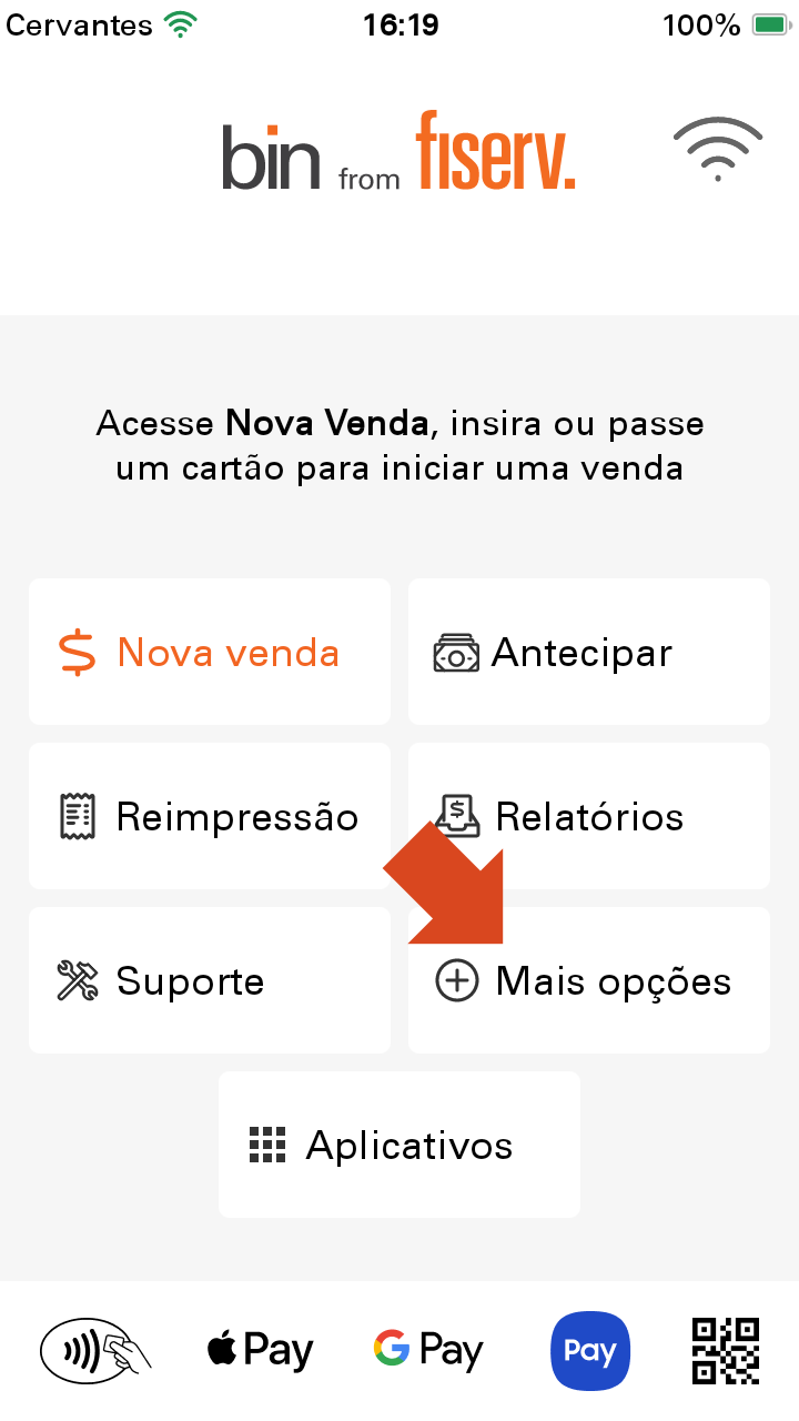 Em nosso exemplo, faremos o procedimento em uma maquininha da adquirente Bin (from Fiserv) mas o processo é semelhante nas Smart POS da Azulzinha e também da Sicredi.