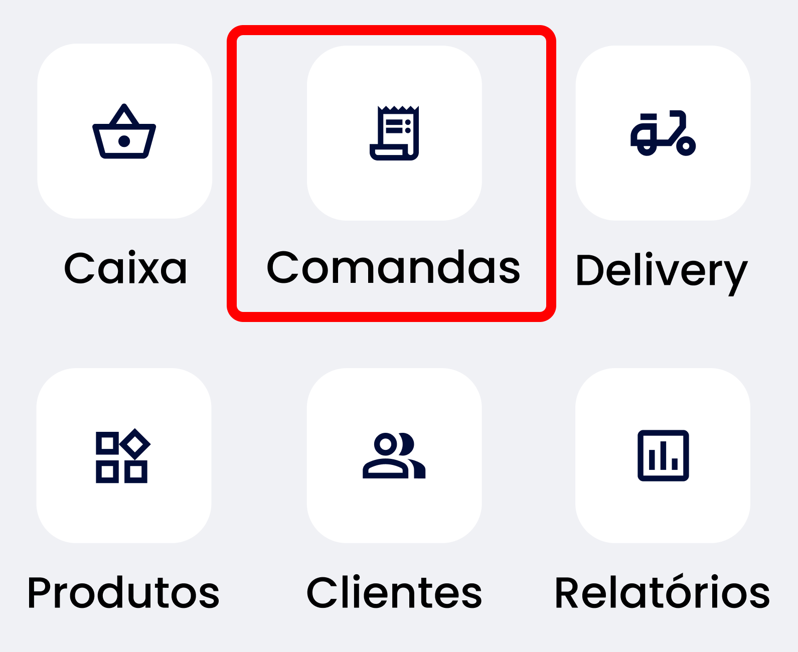 Caso tenha optado pelo atendimento por comandas, este é o ícone que aparecerá na tela inicial.