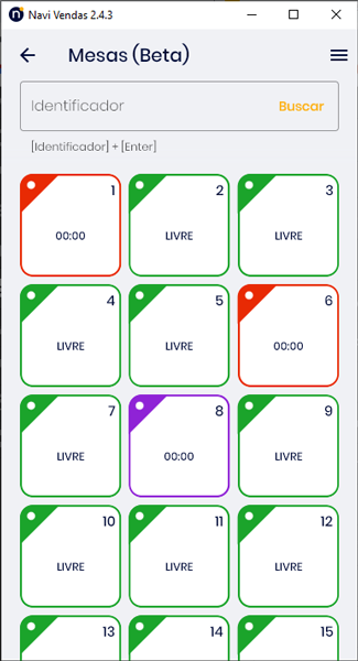 2. Clique na mesa desejada ou busque-a pelo seu número no campo Identificador.