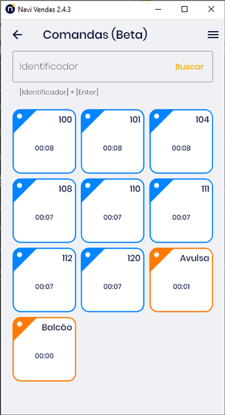 As comandas não ficam listadas em tela, para realizar o atendimento, você deve buscá-la através do campo Identificador.
