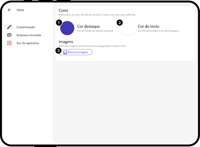Na tela de consulta é possível adicionar imagens ou banners para propaganda, clique em Adicionar imagens, selecione e ajuste as imagens que serão colocadas na tela de consulta.