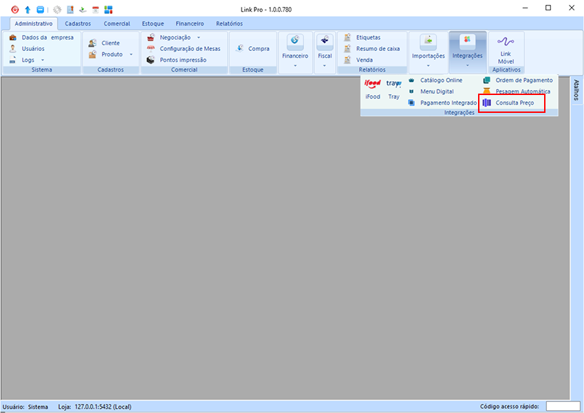 - Clique no botão Consulta Preço, código de acesso rápido “1052”.