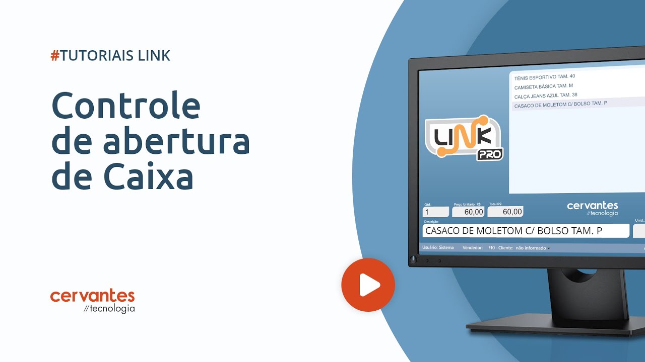 O tutorial a seguir mostra que, ao entrar no módulo Caixa (a partir da versão 1.0.0.702 do sistema Link) é apresentada uma janela de “abertura de Caixa” com informações de data, hora e o campo que permite informar um valor para um eventual suprimento. É possível ver também, onde realizar uma configuração que altera essa funcionalidade.