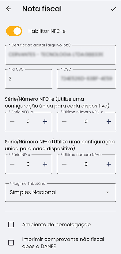 Após enviado o Certificado no Portal, abra o sistema Navi Vendas ou PDV+ e habilite a NFC-e em Configurações: