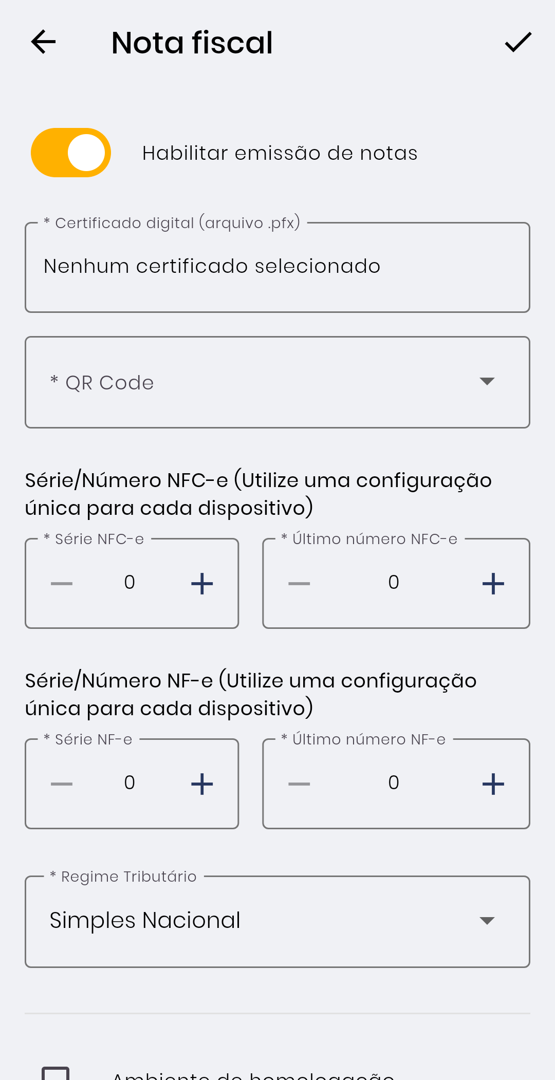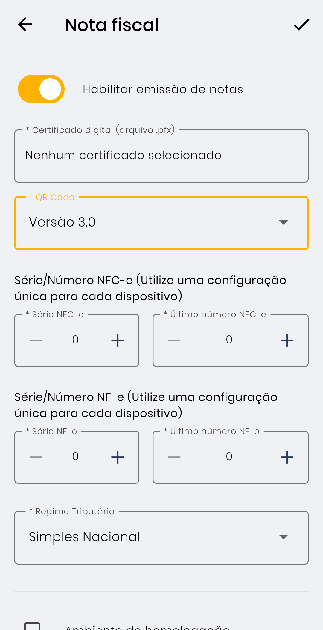 Habilite e preencha as demais informações conforme a necessidade do estabelecimento.