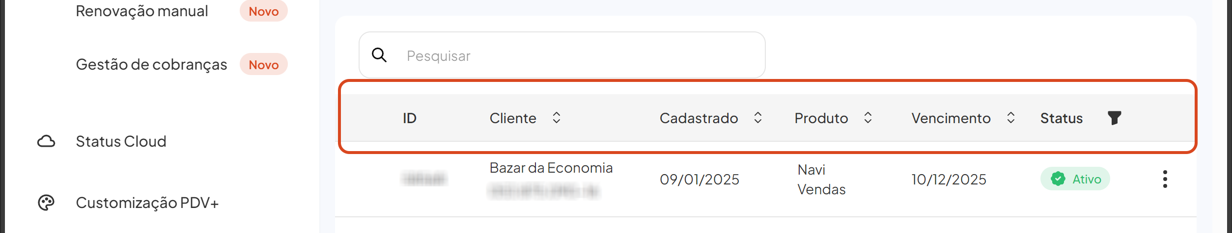 b. Certificado digital: Disponível apenas para clientes Navi Vendas e que possuem status Ativo e Suspenso.