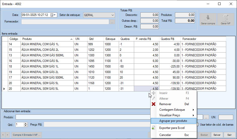 Se preferir, você pode agrupar as contagens de um mesmo produto, clicando com o botão direito na lista e escolhendo a opção Agrupar por produto.