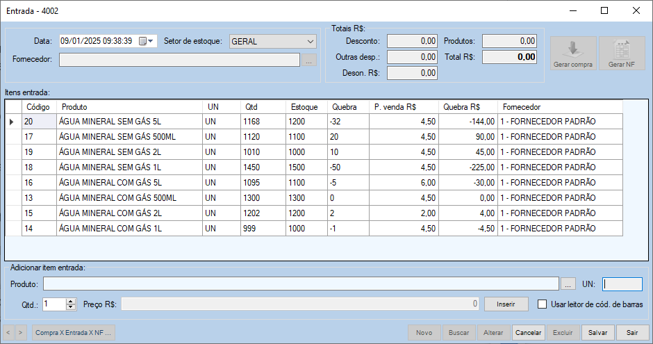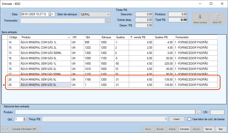 - Após verificar os itens, clique em Salvar. As quantidades em estoque serão substituídas no cadastro de cada produto.