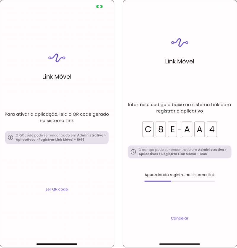 Antes de começar a configuração, deixe o Link Móvel aberto em seu dispositivo e o sistema Link aberto em sua estação.