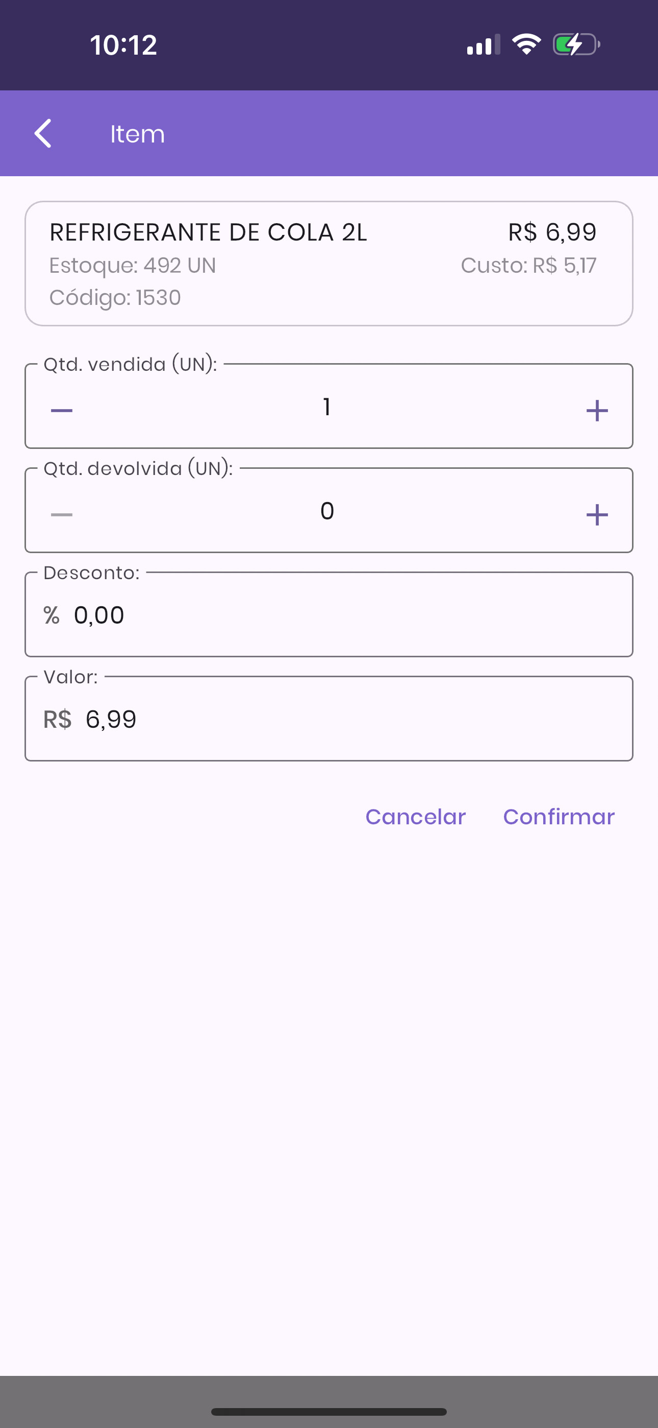 b. Última venda: Mostra a “última venda” feita no dispositivo em uso e permite copiar os “itens” e “quantidades” para uma nova negociação.