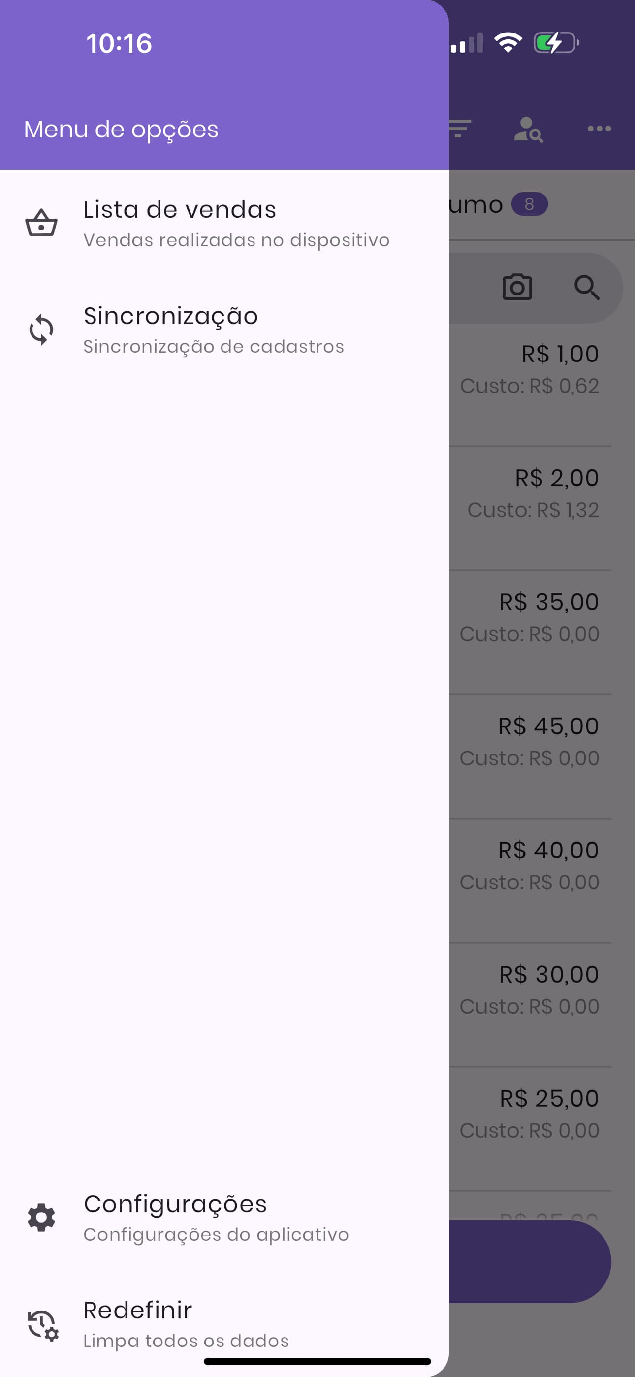 a. Lista de vendas: São apresentadas todas as pré-vendas feitas no dispositivo e seu status: