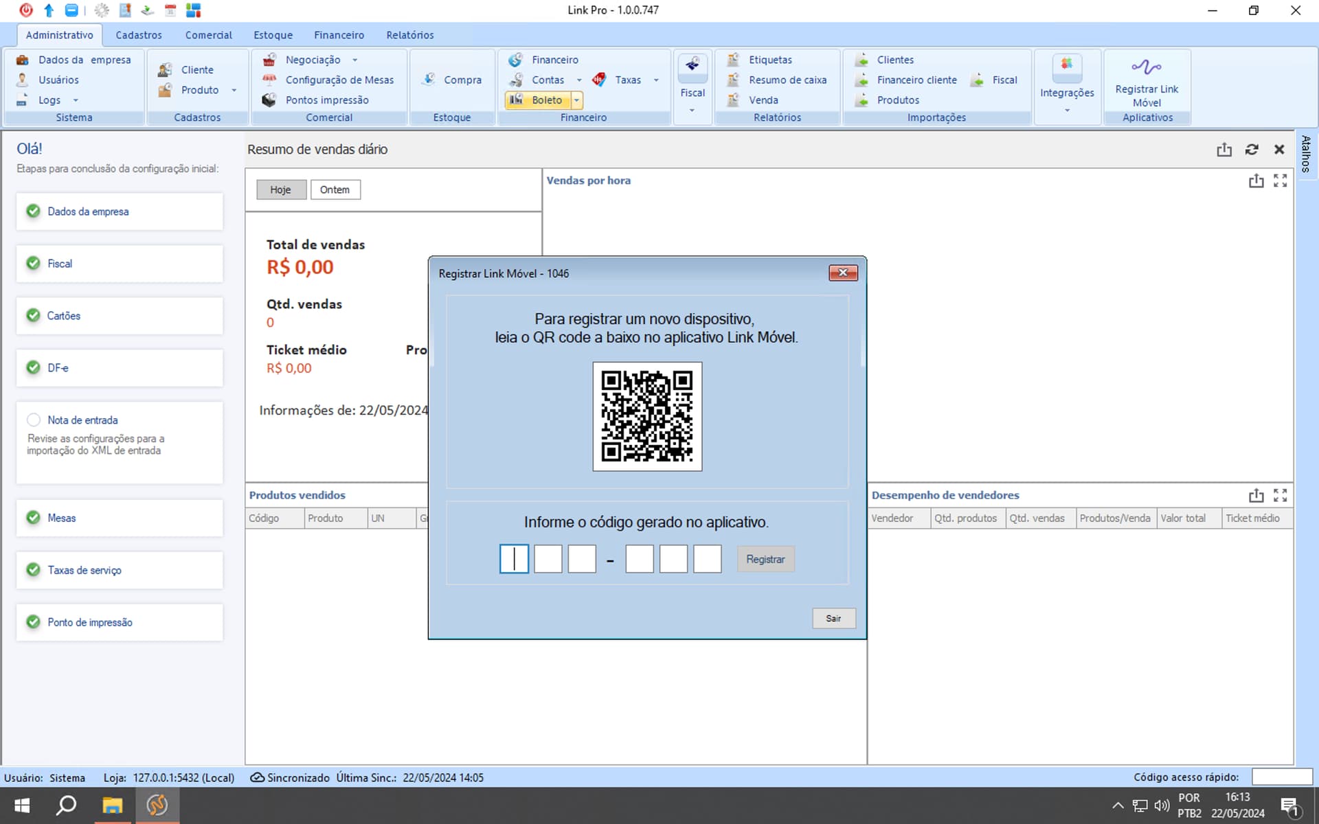 Agora o Link Móvel está sincronizado e pronto para realizar pré-vendas.
