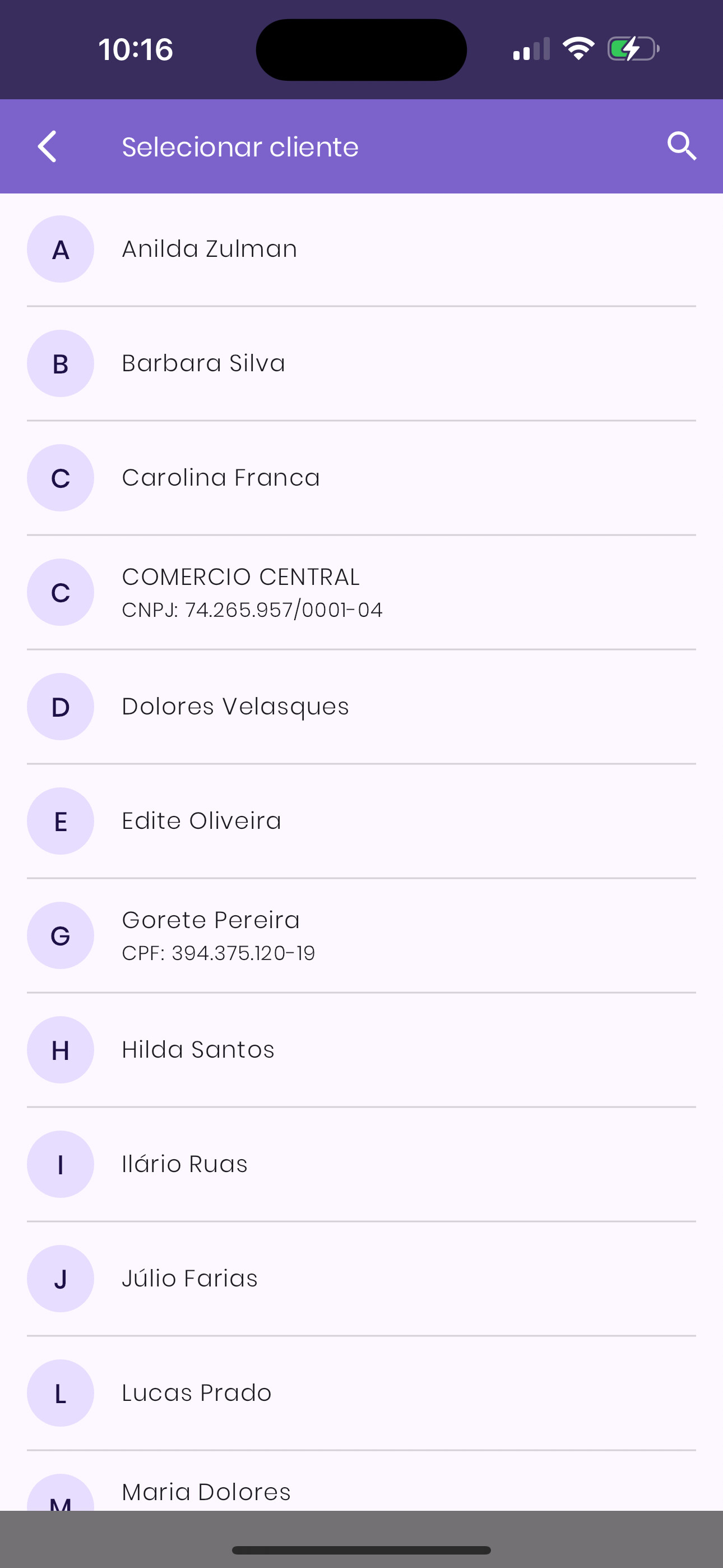 Clique no ícone Cliente para informar o cliente no pedido. É necessário informá-lo quando há pagamento por “Boleto”, “Crediário” e “Outros”.