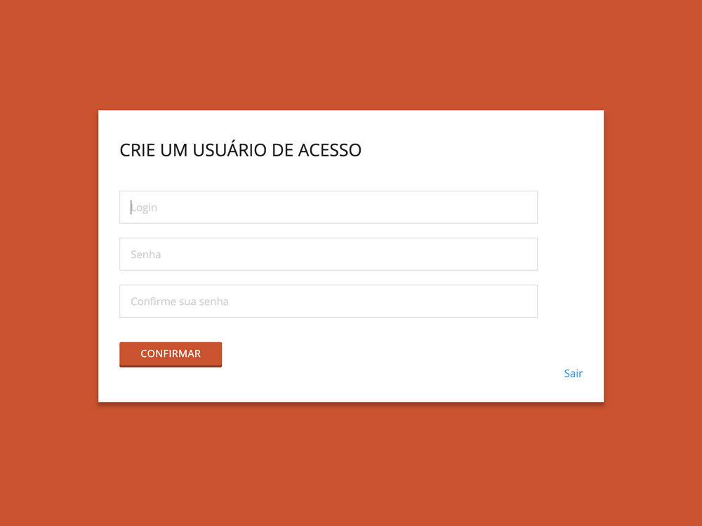 - Agora temos a tela de Criar um usuário de acesso. Preencha com as informações desejadas e clique em Confirmar.