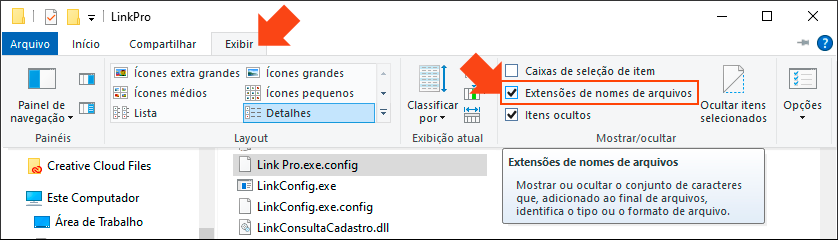 Observação: Caso a extensão do arquivo não esteja aparecendo para você, acesse a aba “Exibir” e marque a opção “Extensões de nomes de arquivos”.
