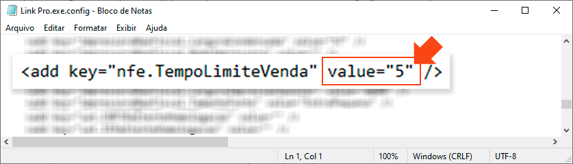 - Localize a linha “add key=“nfe.TempoLimiteVenda” value=“5” /”, então substitua o value=“5” por value=“30”, salve o arquivo e transmita a Nota pendente.