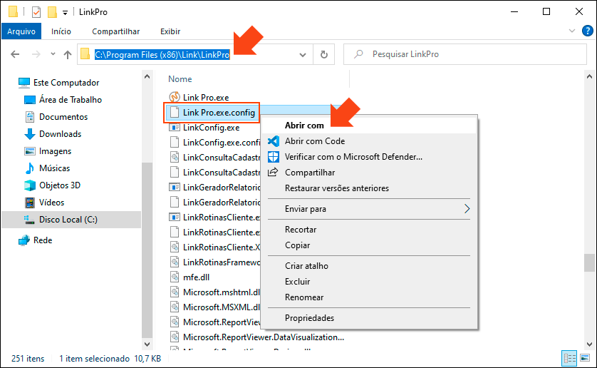 - Localize o arquivo “Link Pro.exe.config” e abra ele em um editor de texto, como o Bloco de notas do Windows.