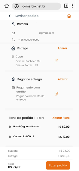 Nesta tela é possível revisar os detalhes do pedido e, se necessário, fazer alterações. Após revisar o pedido, basta clicar em Fazer pedido.