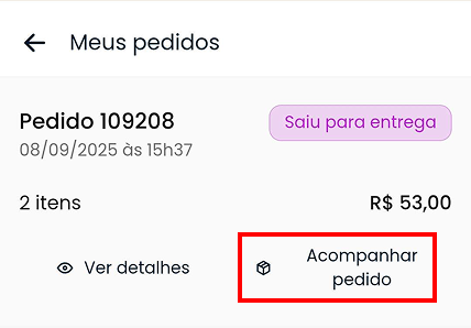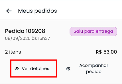 Ver detalhes: O consumidor pode conferir o status de pedidos realizados na aba Pedidos, clicando em Ver detalhes.