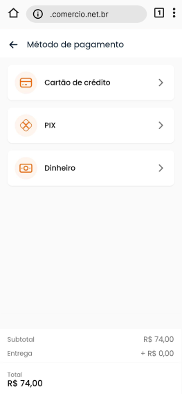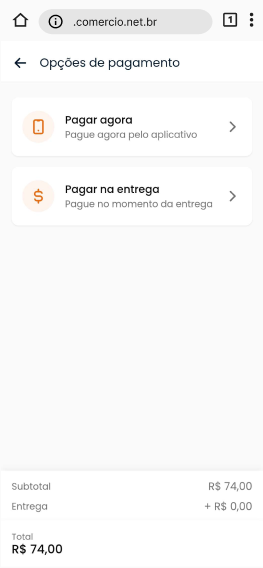As opções de pagamento que estarão disponíveis para o cliente são aquelas que foram habilitadas no sistema. O estabelecimento poderá disponibilizar ao cliente que escolha entre Pagar agora ou Pagar na entrega/retirada/estabelecimento.