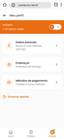 Com o cadastro feito, é possível registrar dados pessoais, endereços de entrega e dados de cartões para seleção rápida na finalização dos pedidos.