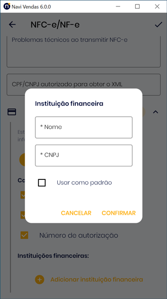 As informações de pagamento, como CNPJ da instituição financeira, bandeira do cartão e Número de autorização, podem ser adicionadas de forma manual na NFC-e. Este recurso é opcional e está disponível para quem utiliza o sistema em computadores e dispositivos móveis.