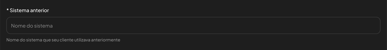 É necessário informar o nome e versão do sistema utilizado anteriormente pelo estabelecimento.