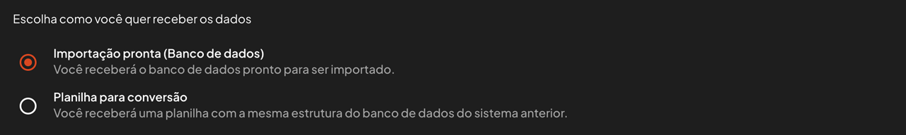 A. Importação pronta (Banco de dados) - Nesta opção você receberá o banco de dados pronto para ser importado.