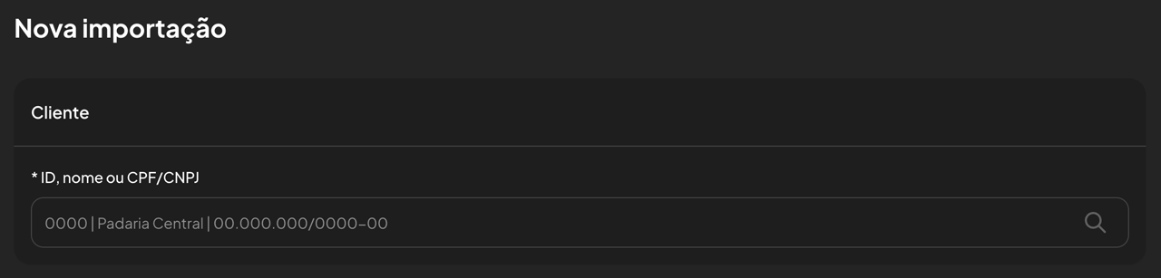 Preencha as informações, começando pela identificação do cliente. Faça a busca através do “ID”, “nome” ou “CPF/CNPJ”.
