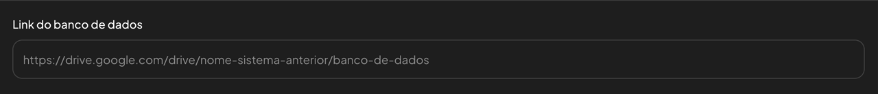 Observação: Caso não seja informado um link para o banco, a equipe de suporte entrará em contato solicitando o arquivo. Nesse caso, você poderá enviá-lo por e-mail. -