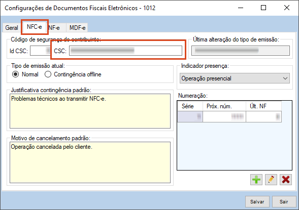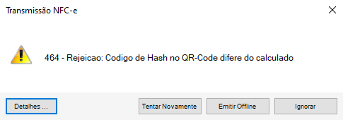 Importante: Mesmo que o código CSC esteja correto, apague-o e digite-o manualmente. Quando o código é copiado diretamente do site da Sefaz, a cópia pode incluir algum caractere que não está visível e este pode ter sido o motivo da divergência.