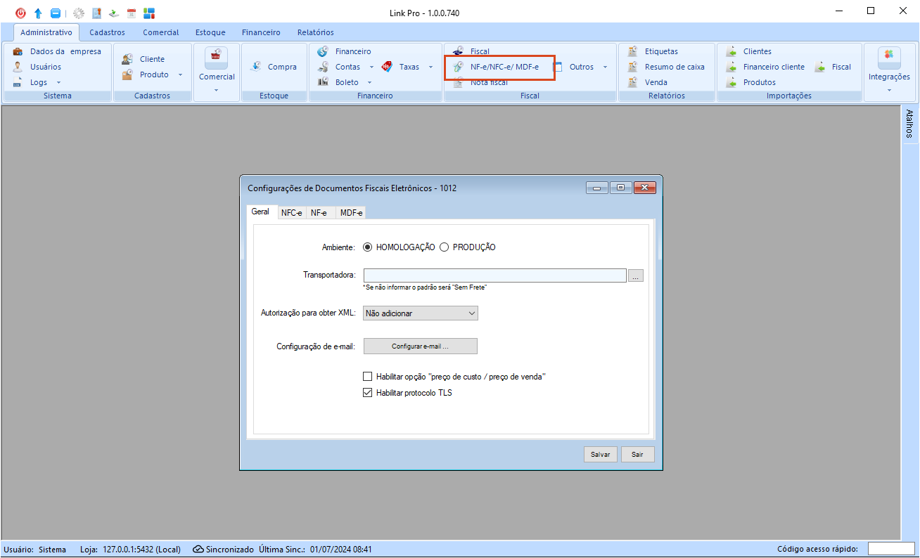 Clique no recurso NF-e/NFC-e/MDF-e.