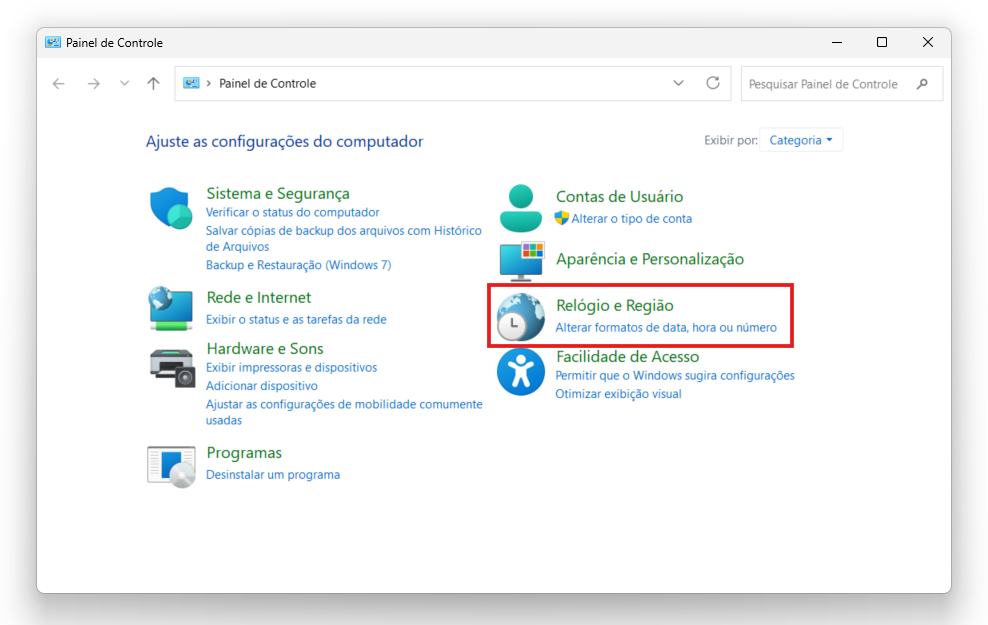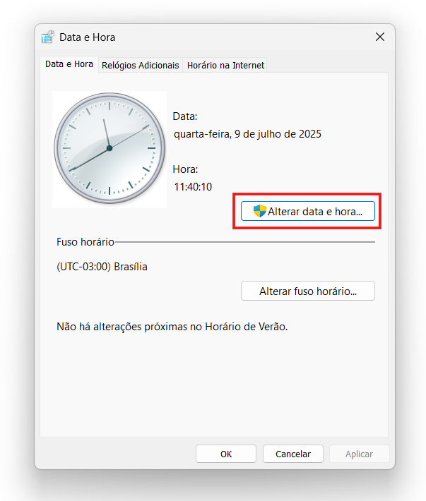 Se identificar que data e/ou horário estão divergentes, realize os passos a seguir: