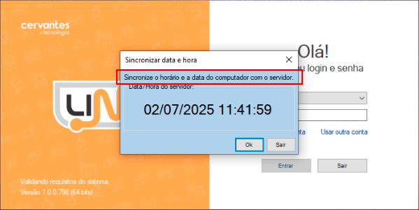 Causa: Ocorre quando as datas e horários do Windows estão diferentes entre o servidor e a estação, impedindo o login no sistema.