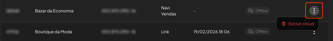 Clientes Navi Vendas/PDV+: É mostrada a opção Excluir Cloud.